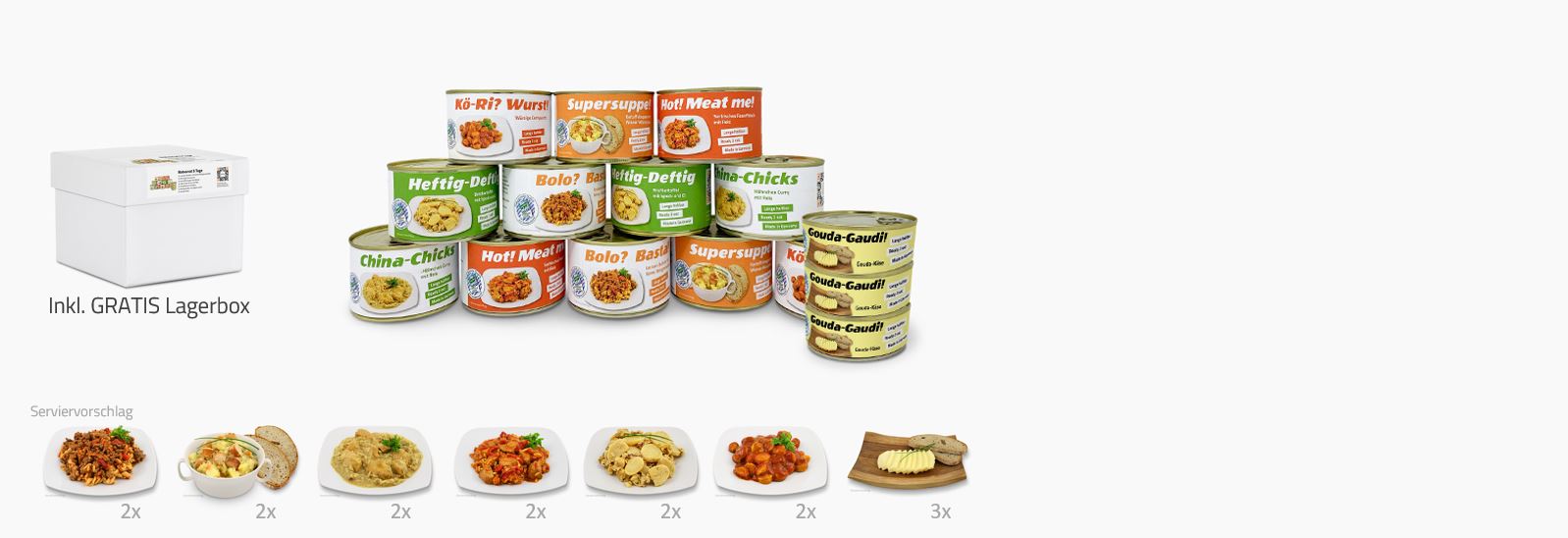 Haltbare Tagesration mit 26 Einzelartikeln!