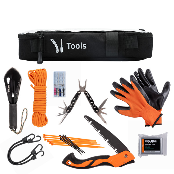 Enthalten sind alle wichtigen Dinge zum Kochen, Essen, Trinken, Strom erzeugen, informiert bleiben, Schlafen, für die Hygiene und um Erste Hilfe zu leisten sowie weitere praktische Ausrüstung. Alles ist strukturiert in 10 einzelne Module gepackt.